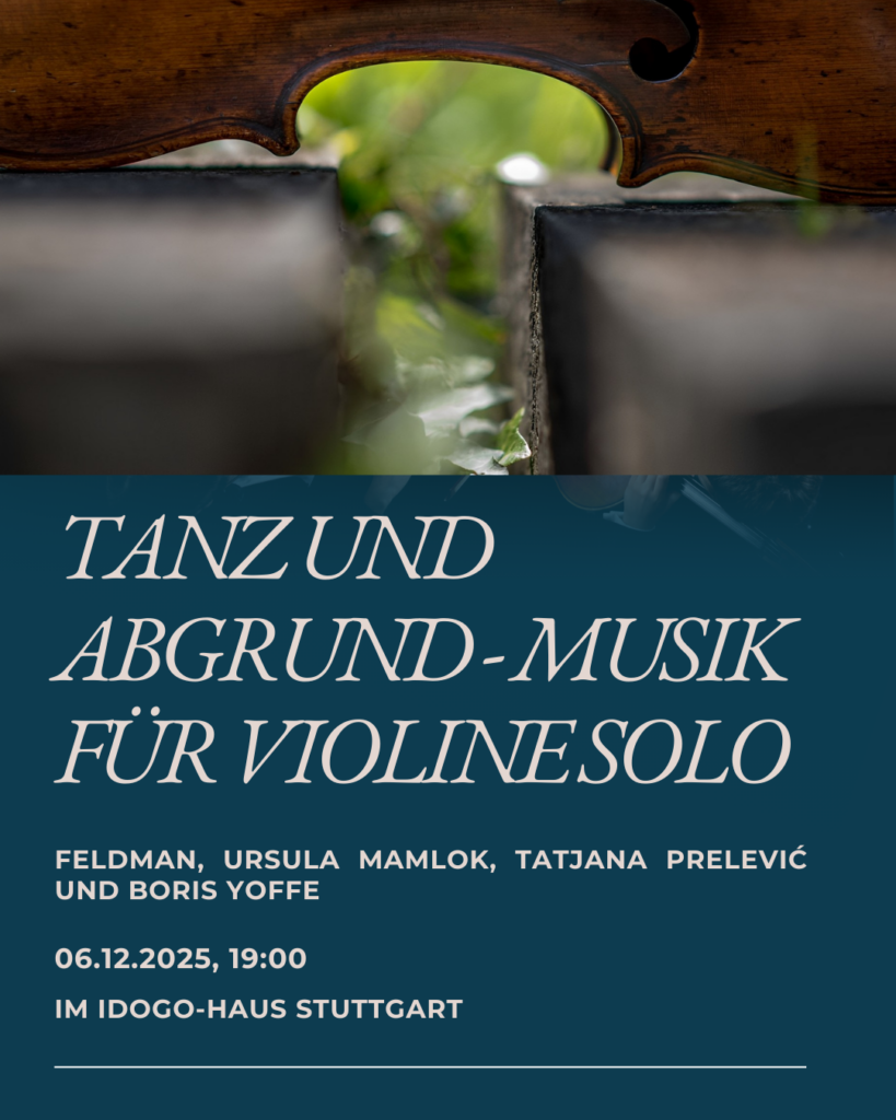 Neben Werken von Ursula Mamlok und Tzvi Avni wird das Violinduo „Ravalesken“ des Stuttgarter Geigen-Professors Kolja Lessing aufgeführt – dem Widmungsträger der beiden ersteren Werke.